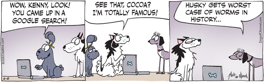 Dogs of C-Kennel, created by Mick Mastroianni, was featured as a comic strip in development in February 2007. Syndicated in 2010, the Dogs are now produced by Mick and his brother, Mason Mastroianni, B.C. cartoonist and Wizard of Id Illustrator.