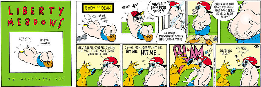 Liberty Meadows, is one of Cho's most popular works spreading laughter by bringing these animal to life with his sense of humor and superior artwork.