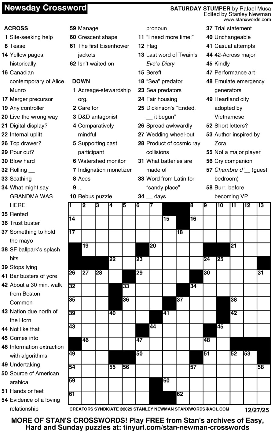 Stan Newman crafts a fresh and challenging puzzle every day of the week! Stay sharp and challenge yourself to solve each and every one.